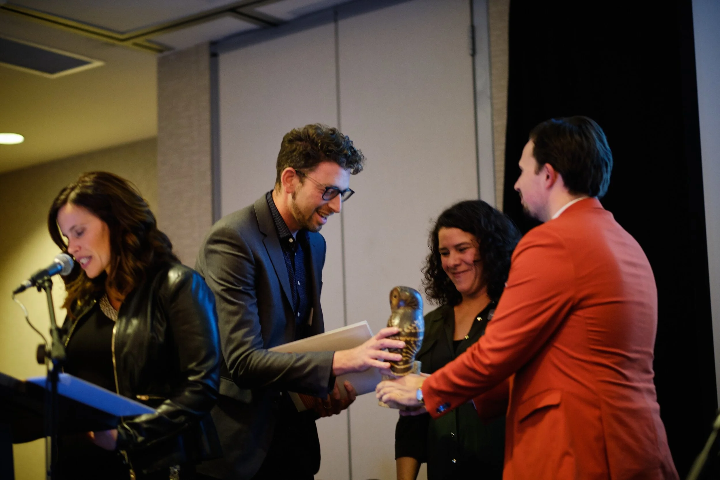 Right: Michael Schwartz accepting the award on behalf of all the walking tour partners